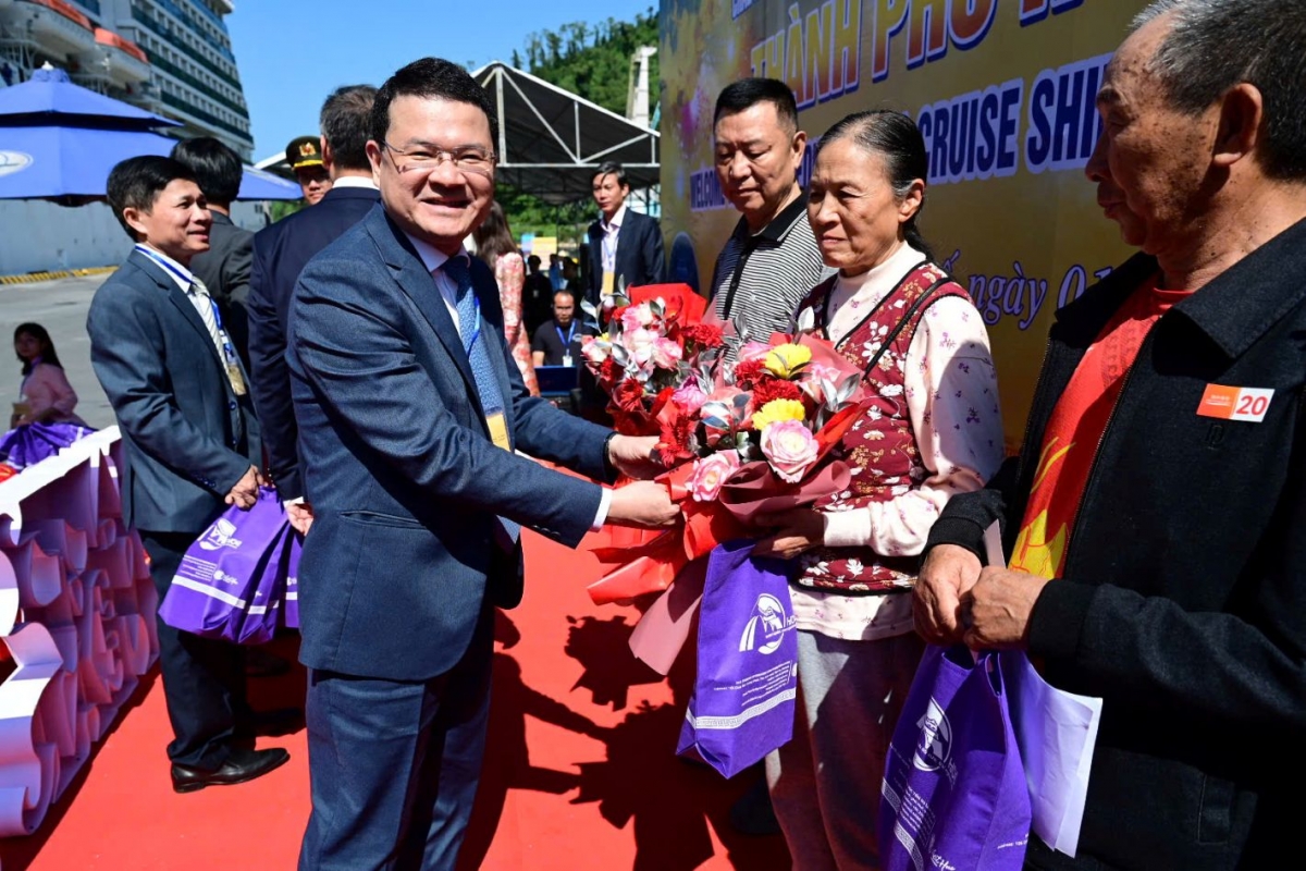 Lãnh đạo Sở Du lịch thành phố Huế đón tiếp du khách đến Huế bằng tàu biển