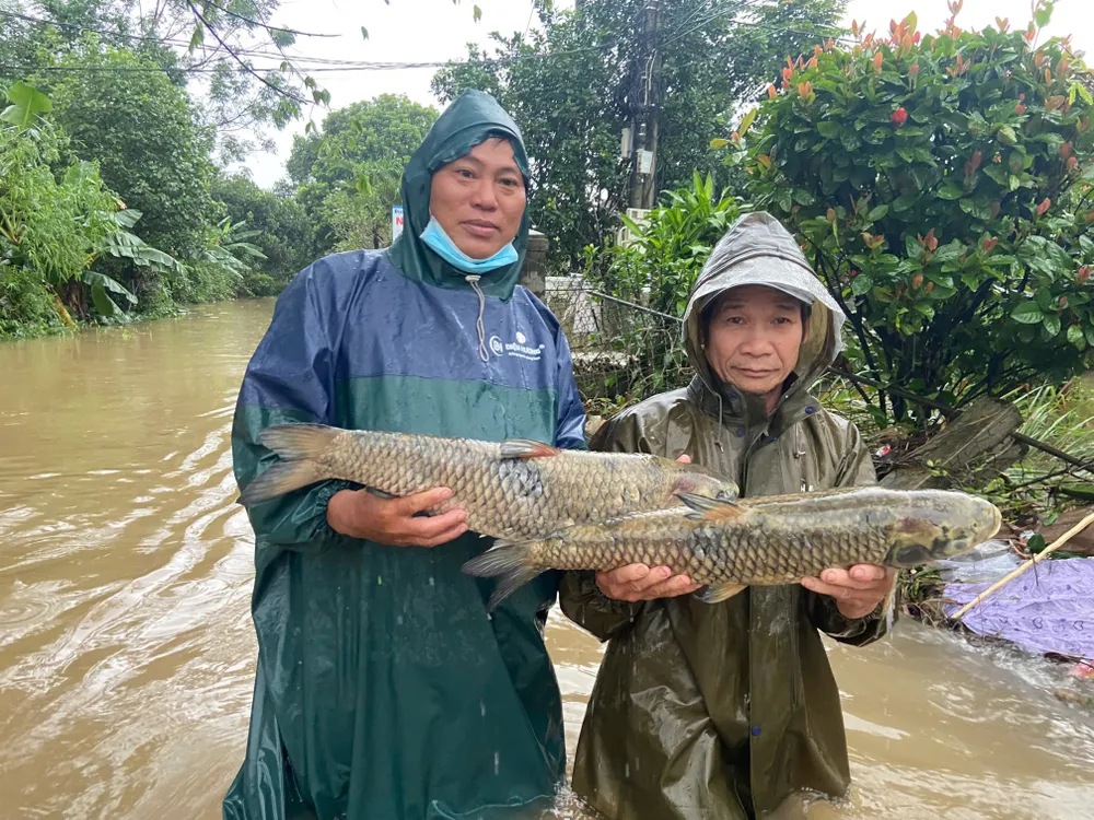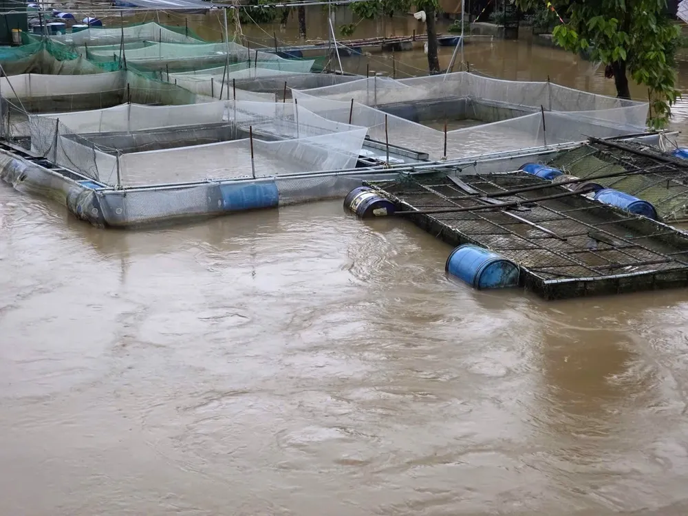 Người dân nuôi cá lồng bè ở đây cũng rất lo lắng trước việc nước ngập sâu các tuyến đường, xe tải và thương lái không vào để mua bán cá được; dẫn tới thiệt hại nặng nề hơn. Ảnh: MINH TRƯỜNG