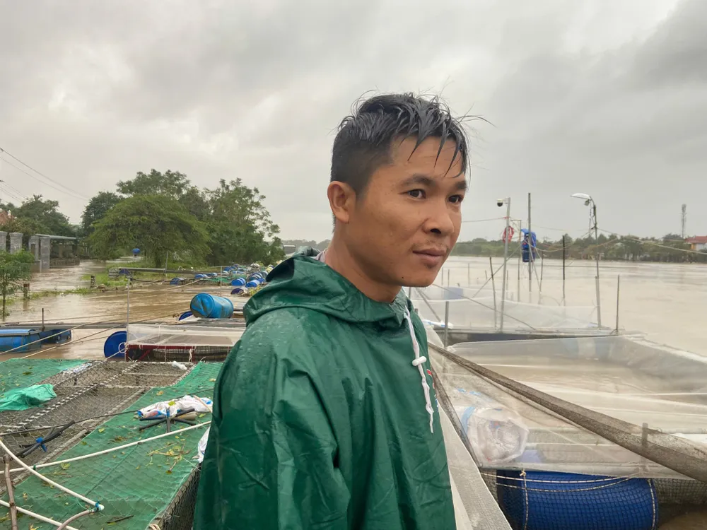 Tương tự anh Quyết, anh Lê Quang Huynh (35 tuổi) vay mượn với số vốn 2 tỉ đồng để đầu tư 12 lồng bè để nuôi cá cũng đang đứng trước nguy cơ “tay trắng” trước dòng lũ. Ảnh: MINH TRƯỜNG.