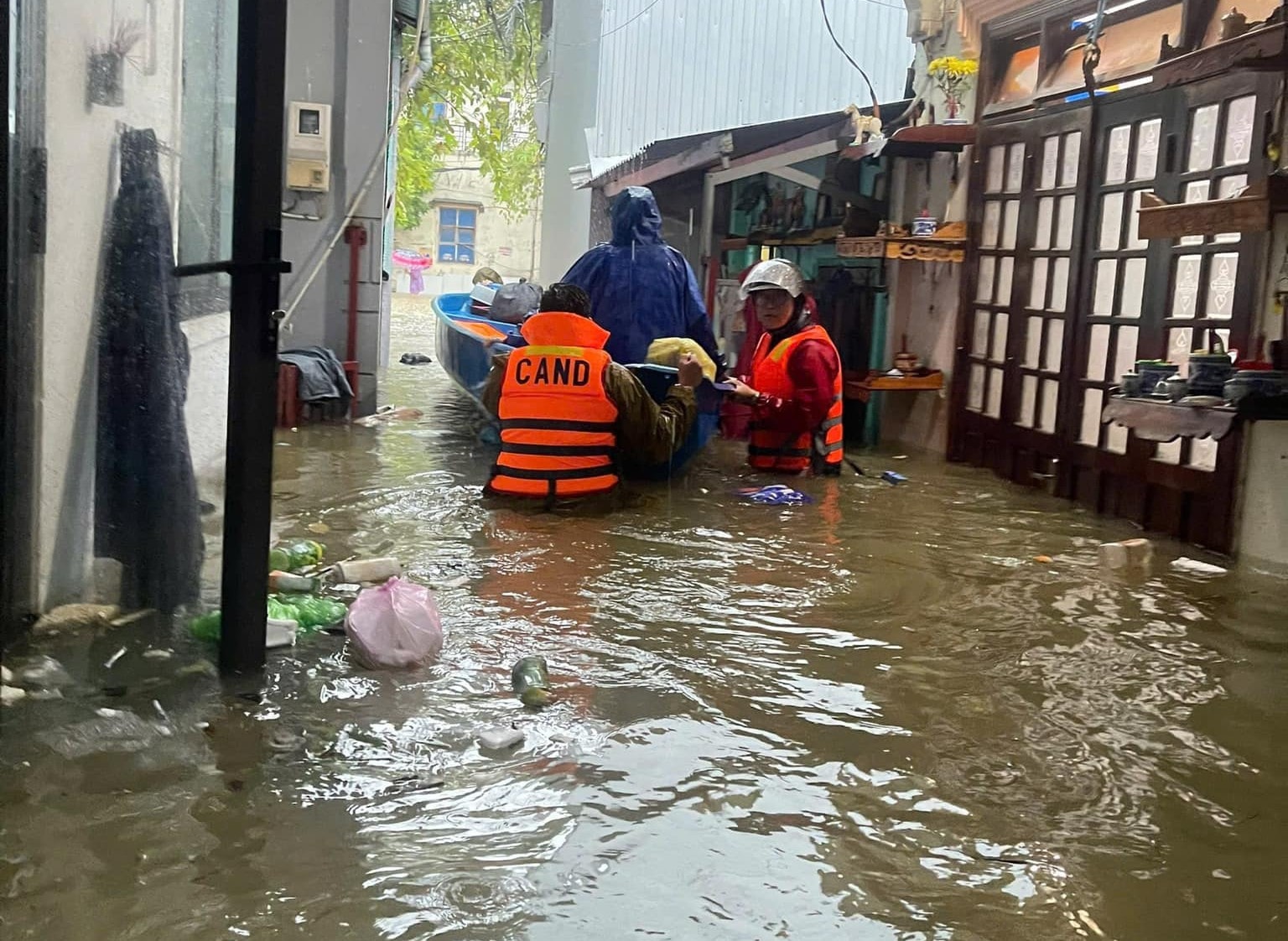 Mưa lũ tại Huế còn diễn biến phức tạp đến tháng 11-2025. Ảnh: Công an cung cấp.
