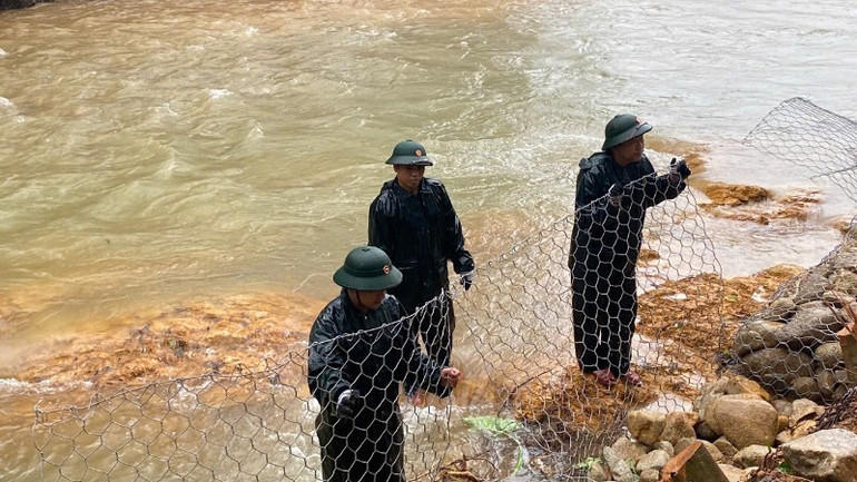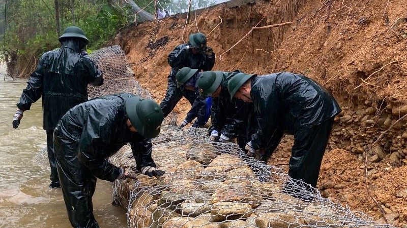 Do ảnh hưởng của đợt mưa lớn kéo dài từ ngày 17/11 đến nay, đoạn bờ kè dài hơn 100m bị sạt lở nghiêm trọng, đe dọa trực tiếp tuyến giao thông liên thôn, ảnh hưởng đến sinh hoạt và sản xuất của người dân. Ngay khi nhận được đề nghị từ địa phương, Bộ Chỉ huy Quân sự thành phố Huế đã huy động cán bộ, chiến sĩ và lực lượng dân quân tổ chức gia cố, khắc phục hư hỏng.