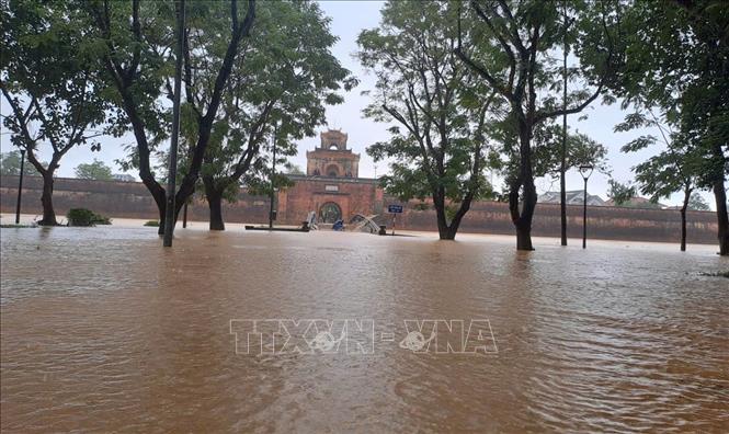 Ngập lụt trước Kinh thành Huế, phường Phú Xuân, thành phố Huế, sáng 30/10. Ảnh: Nguyên Lý/TTXVN