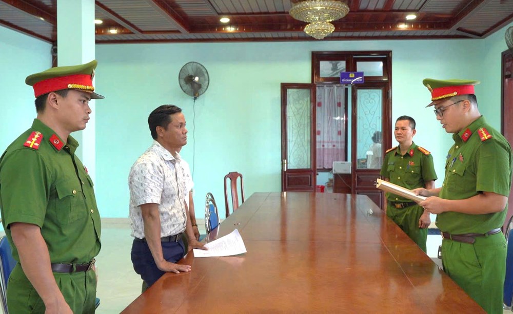 Cơ quan công an đọc lệnh khởi tố và bắt tạm giam dối với ông Dương Đăng Khoa - Phó Giám đốc Trung tâm dịch vụ công phường Thuận Hóa, TP. Huế. Ảnh: HL
