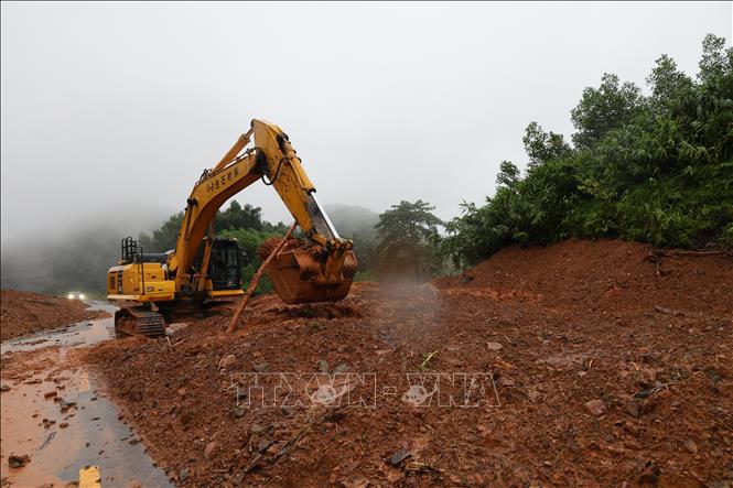 Sạt lở nghiêm trọng trên tuyến cao tốc La Sơn – Túy Loan đi qua xã Khe Tre, thành phố Huế. Ảnh: Đỗ Trưởng/TTXVN