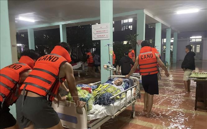 Công an thành phố Huế đã huy động hàng chục cán bộ, chiến sỹ có mặt tại bệnh viện này phối hợp với các bác sỹ, nhân viên y tế, bảo vệ, người nhà người bệnh xuyên đêm đưa hàng chục người bị bệnh nặng, cùng các trang thiết bị y tế lên tầng cao, để bảo đảm an toàn cho bệnh nhân trong quá trình điều trị.