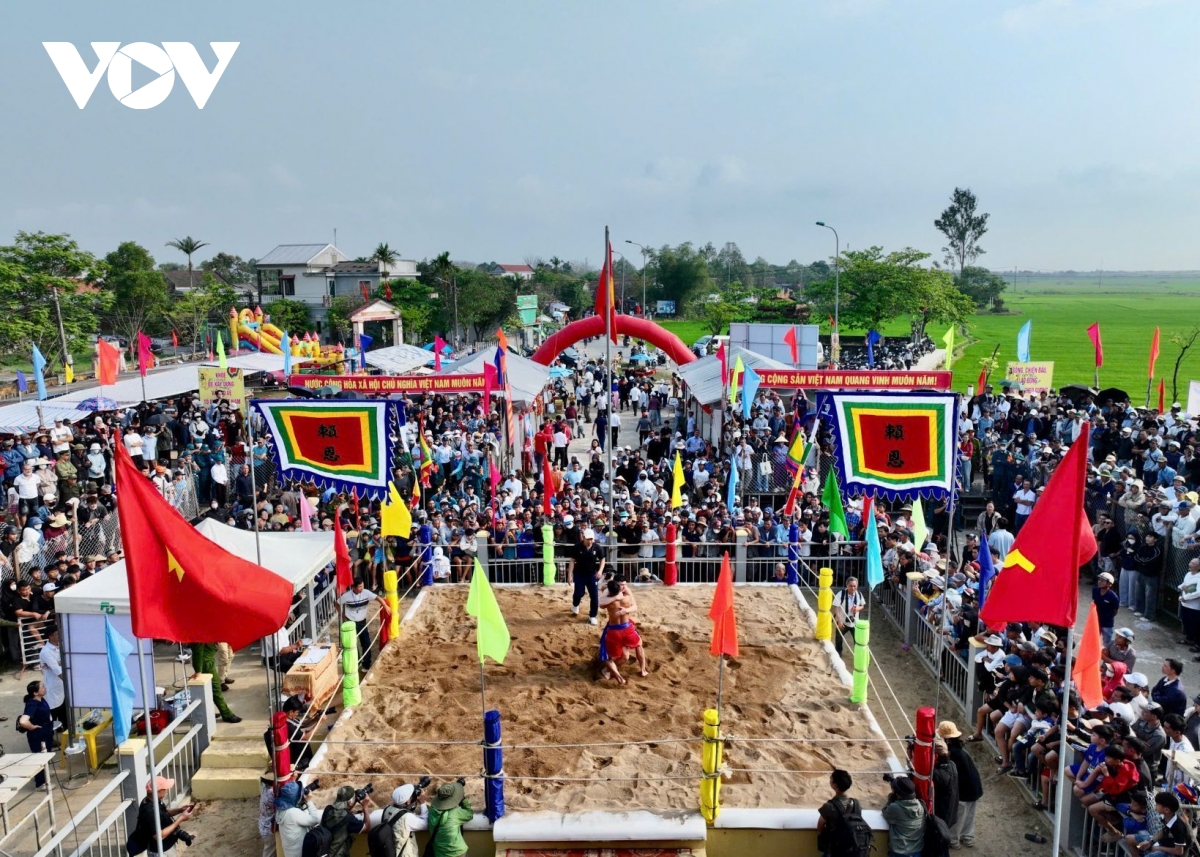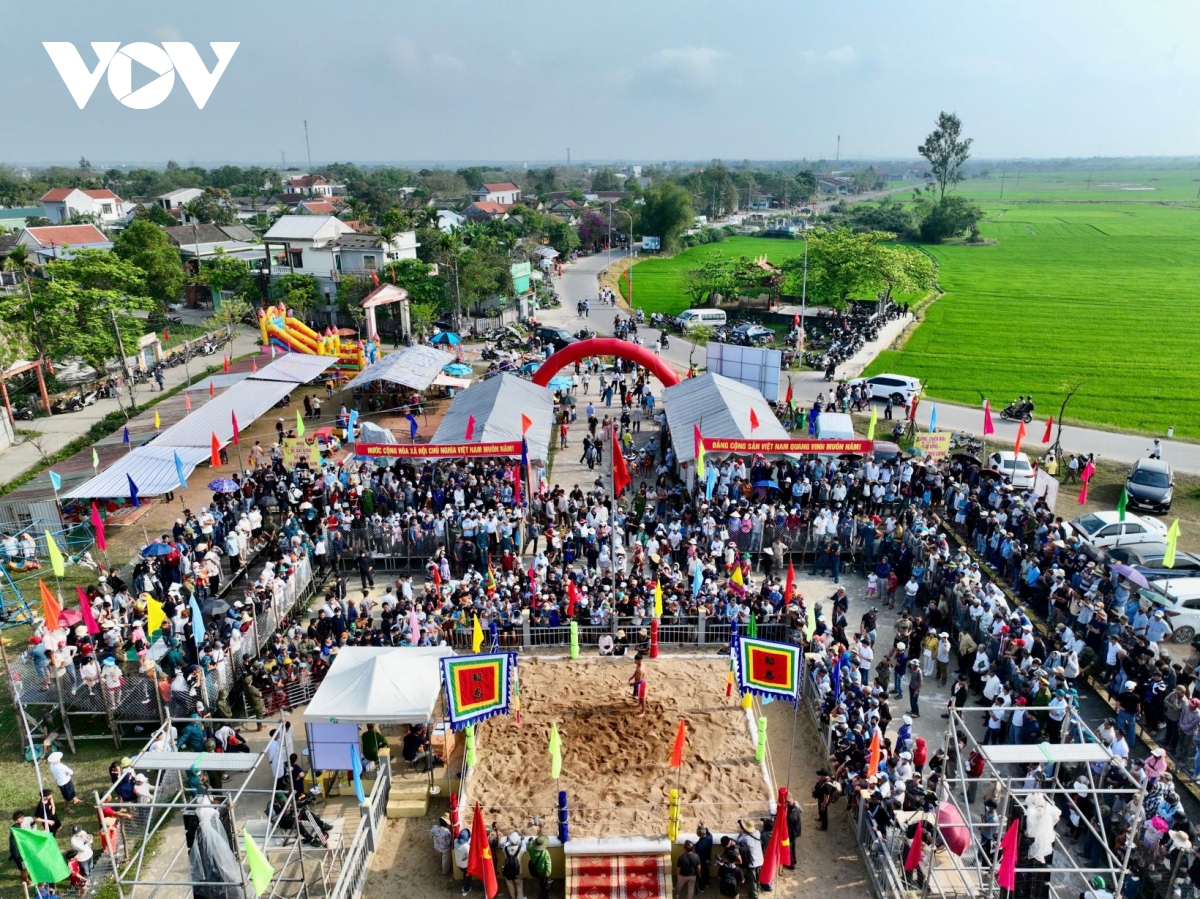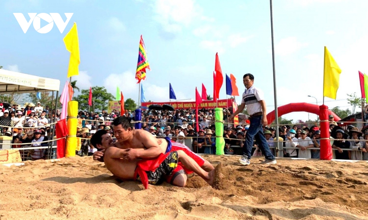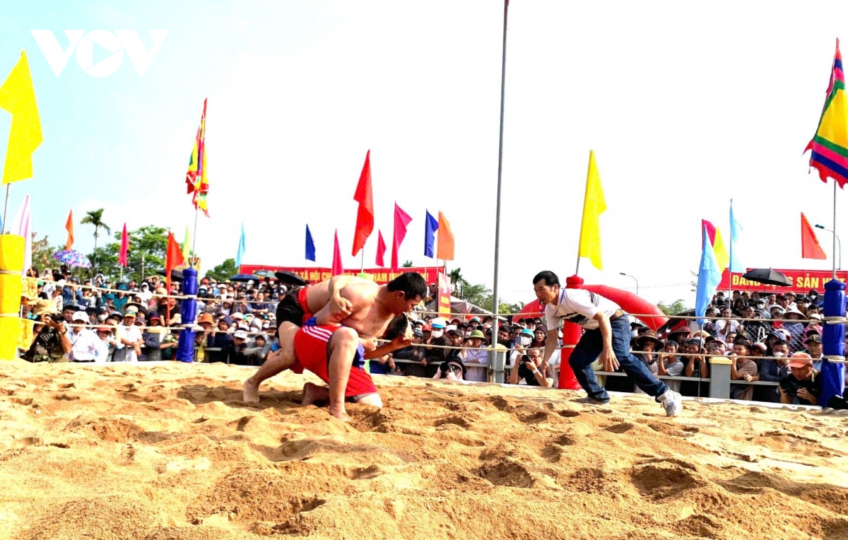 Chị Đặng Thị Kim Sang, du khách đến từ thành phố Hồ Chí Minh tham gia lễ hội thích thú: “Mình thấy mọi người tham gia cũng rất hào hứng, các đô vật thì sung sức. Em thấy năm nay có nhiều du khách nước ngoài ghé thăm lễ hội. Mọi người tham gia lễ hội rất đông đúc. Rất là rộn ràng, vui nhộn”.