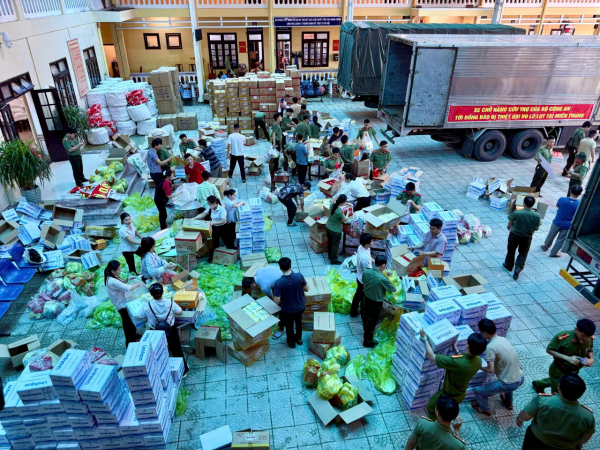 30 tấn hàng cứu trợ của Bộ Công an hỗ trợ TP Huế được phát đến tận tay người dân trong hôm nay (1/11).