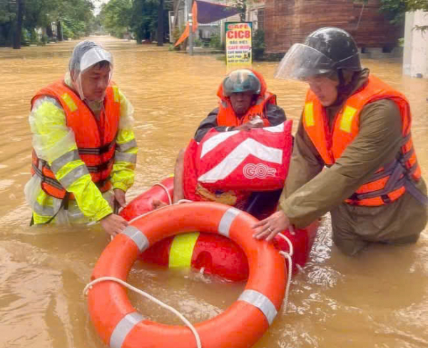 Các chiến sĩ Công an TP Huế chạy đua để cứu người trong đợt mưa lũ lịch sử vừa qua.
