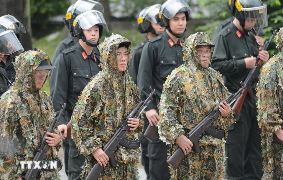 Các đơn vị triển khai lực lượng tham gia diễu hành ra quân. (Ảnh: Văn Dũng/TTXVN)