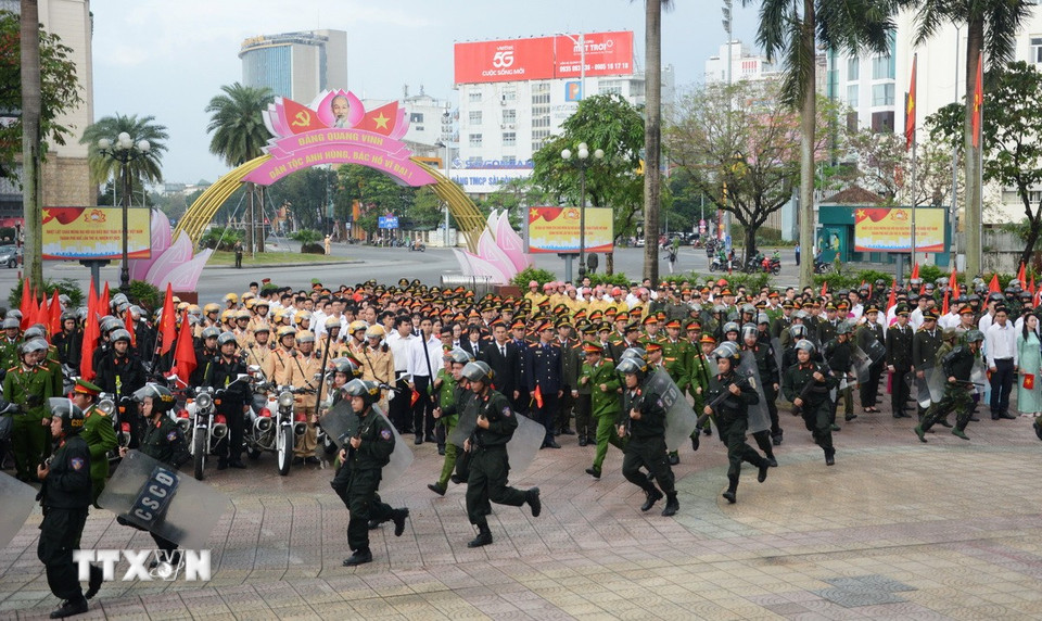 Lực lượng Công an diễu hành tại lễ ra quân. (Ảnh: Văn Dũng/TTXVN)