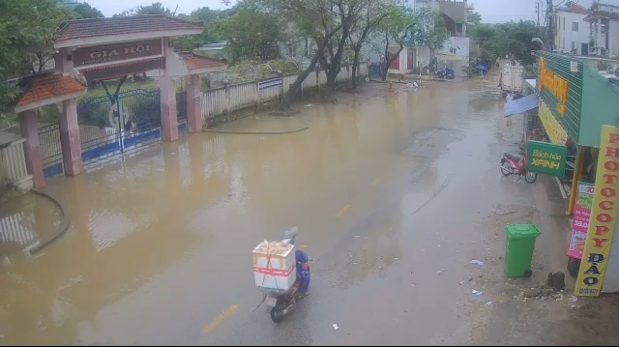 Nước lũ tràn lên mặt đường Trường Chinh. Ảnh: Hue-S.
