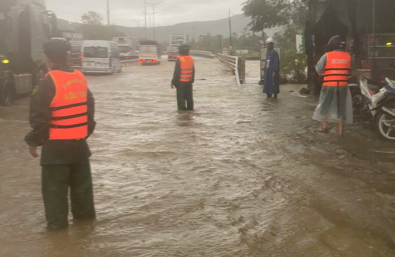 Tuyến đường quốc lộ 1 qua địa bàn xã cũng bị ngập một đoạn khoảng 200m. Hiện, lực lượng công an xã phối hợp Cảnh sát giao thông Phú Lộc điều tiết phương tiện giao thông qua đoạn ngập.