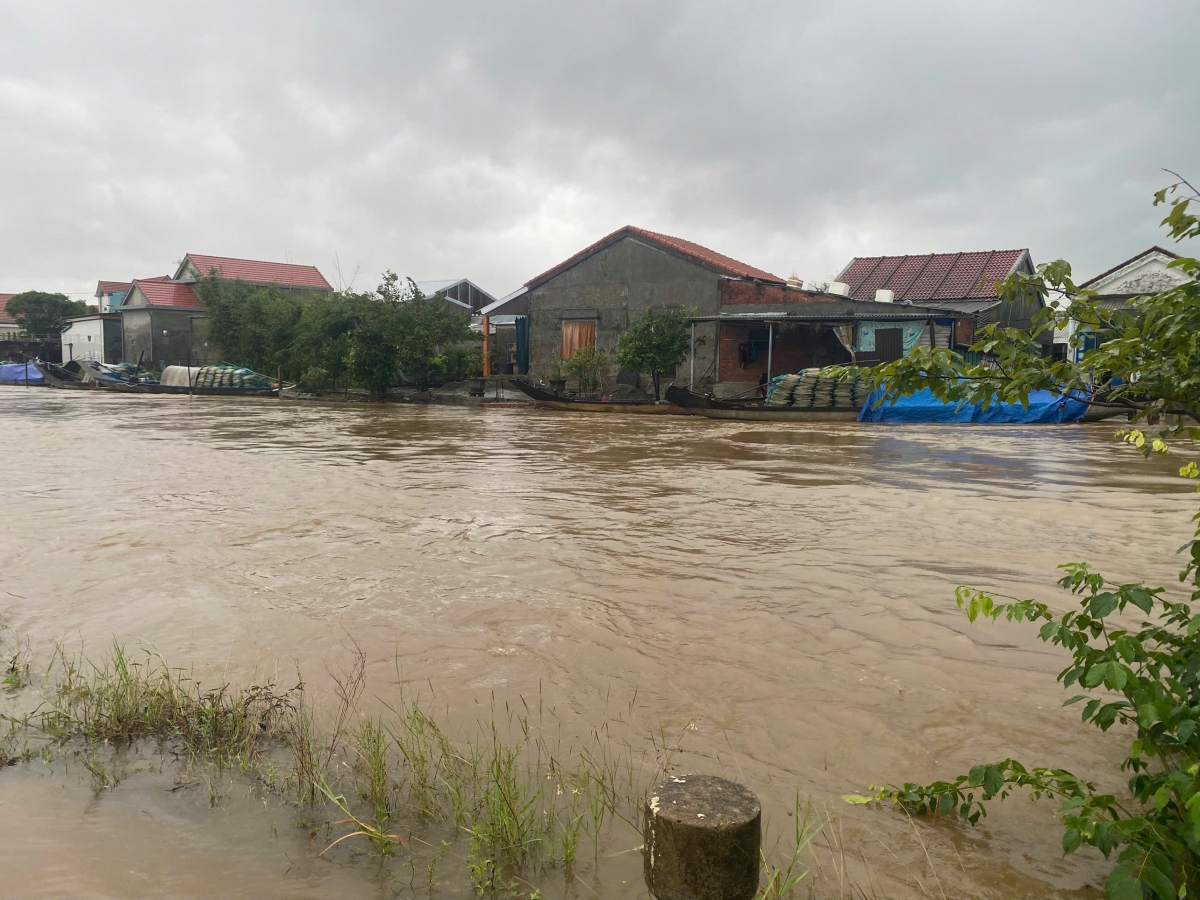 Nước dâng nhanh khiến một số khu dân cư ở xã Phú Lộc, thành phố Huế ngập sâu
