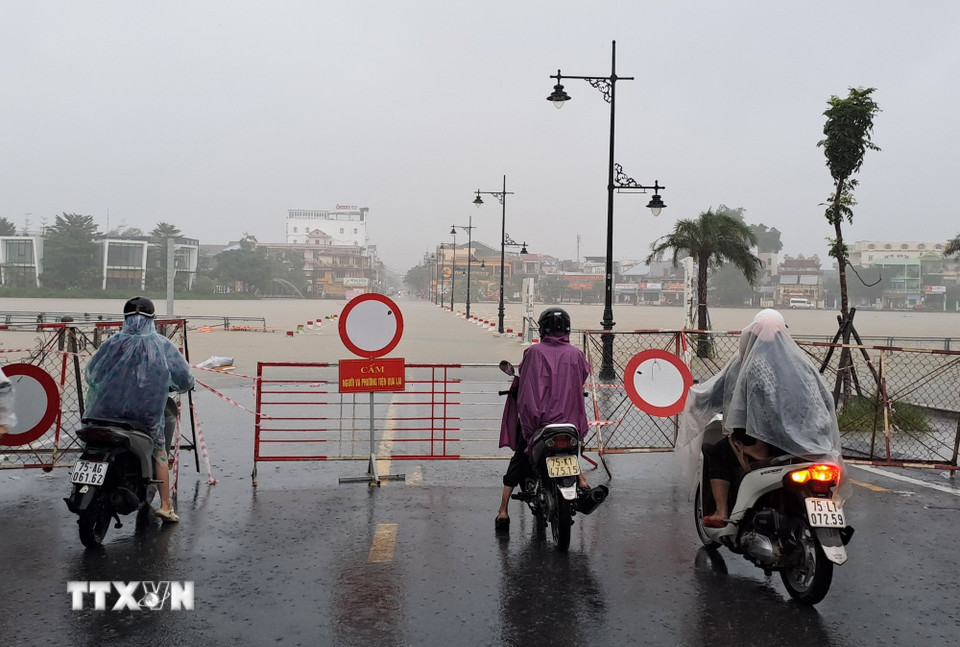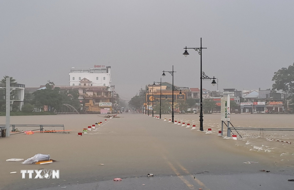 Lũ trên sông Hương, thành phố Huế vượt mức báo động chiều 26/10. (Ảnh: Nguyên Lý/TTXVN)