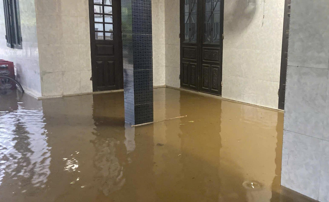 Nước tràn vào sân vườn, nhà dân ở xã Phú Lộc, Huế.