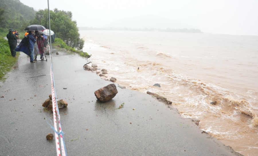 Đặc biệt, tại đường Trần Huy Liệu (phường Phú Xuân), đoạn kè và đường phía sau Nhà văn hóa Trung tâm thành phố cũ bị sạt lở nghiêm trọng, kéo dài khoảng 50m; mặt đường bị sụt lún, lực lượng chức năng đã phong tỏa hoàn toàn, cấm phương tiện lưu thông.