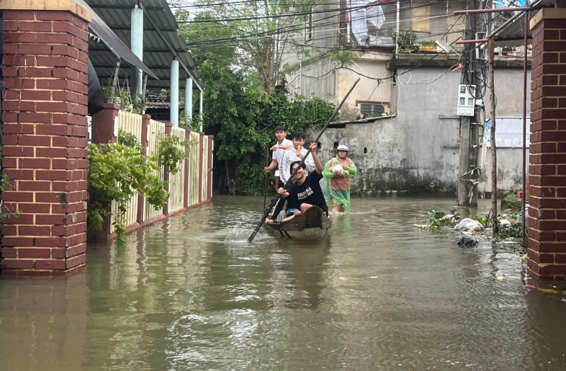 Tại phường Hóa Châu, khoảng 50–60% tuyến đường bị ngập sâu, có nơi nước dâng đến 80cm, người dân phải di chuyển bằng ghe, thuyền. UBND phường đã cắm biển cảnh báo, rào chắn tại các điểm ngập và bố trí lực lượng trực 24/24h hỗ trợ di dời người dân, tài sản khi cần thiết.