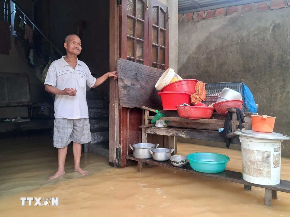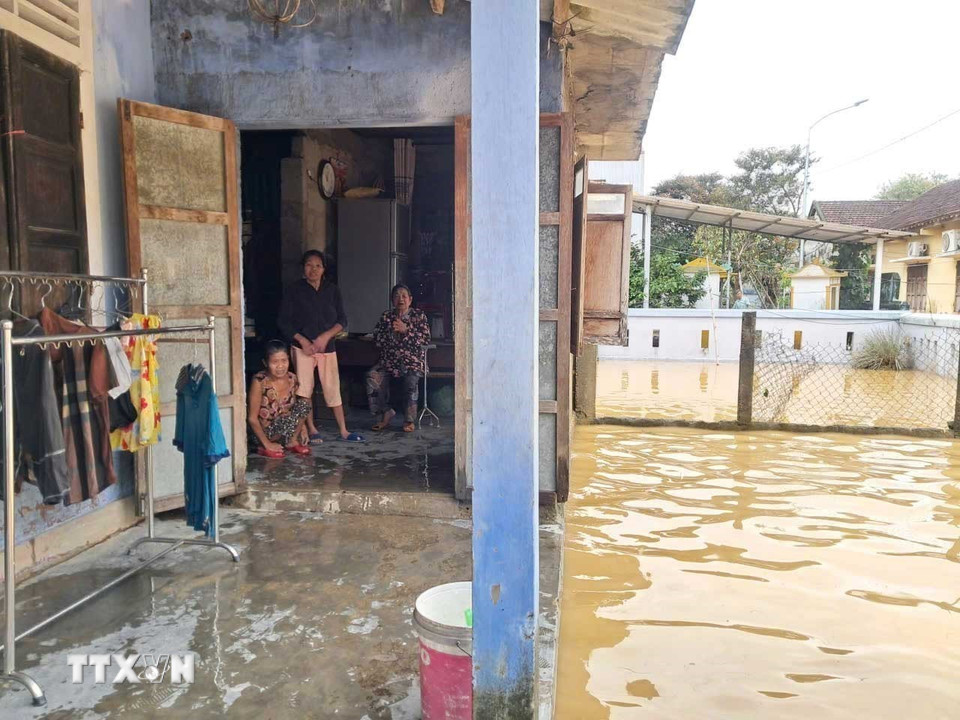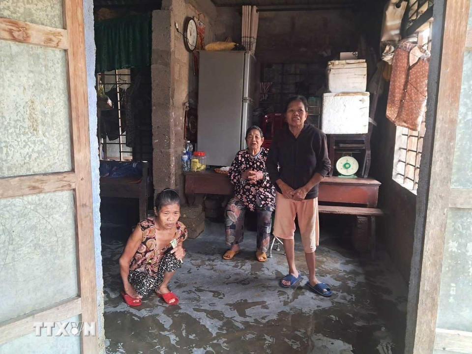 Hộ gia đình bà Nguyễn Thị Khế, khóm 18, Tổ dân phố Phú Khê, phường Dương Nỗ (Huế), đặc biệt khó khăn, vẫn đang ngập trong lũ. (Ảnh: Kha Phạm/TTXVN)