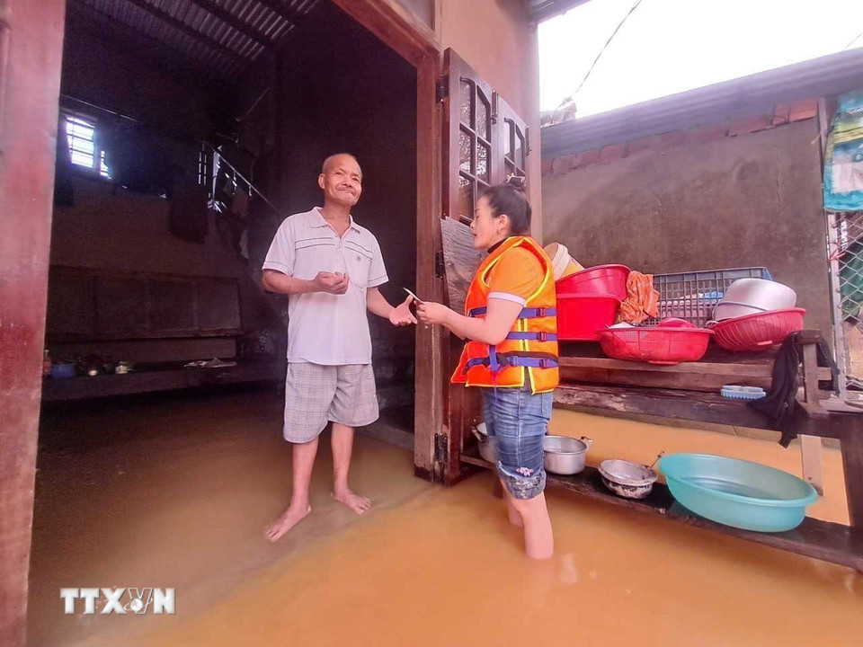 Người dân phường Dương Nỗ (Huế) vẫn chịu cảnh ngập sâu và chuẩn bị đón đợt mưa lũ mới. (Ảnh: Kha Phạm/TTXVN)