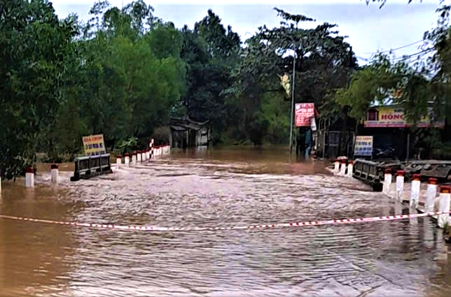 Tại tuyến đường tỉnh lộ 11C cầu Kẽm, TDP An Lỗ; tuyến đường từ Miếu bà đi trường cấp 2 thuộc TDP Hiền Lương… bị ngập sâu khoảng 0,5m. Ngoài ra, nhiều tuyến đường liên thôn, liên phường bị ngập sâu từ 0,5 - 1m, giao thông đi lại khó khăn.