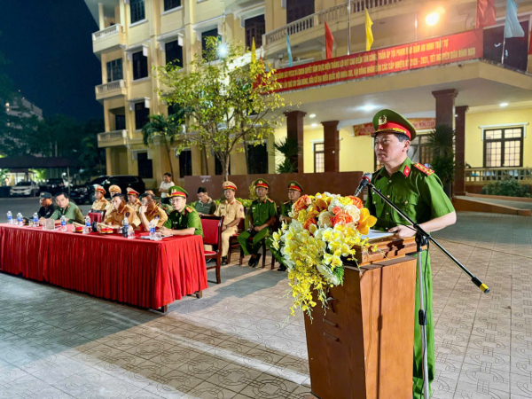 Đại tá Nguyễn Viết Hoàng, Phó Giám đốc Công an TP Huế trực tiếp chỉ đạo công tác ra quân xử lý tình trạng thanh thiếu niên vi phạm pháp luật trên đường phố tối 18/4.