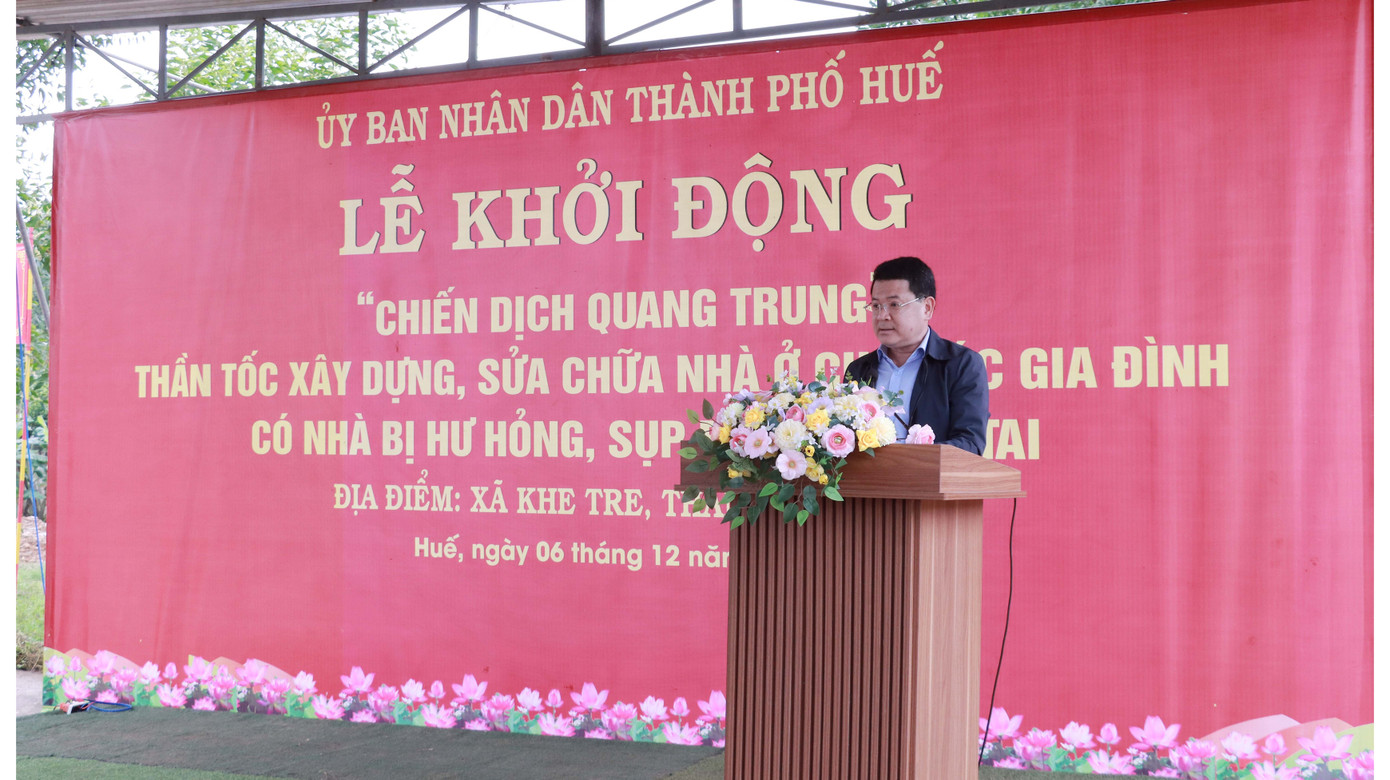 Phát biểu tại buổi lễ, Phó Chủ tịch UBND TP. Huế Hoàng Hải Minh nhấn mạnh đây là nhiệm vụ chính trị trọng tâm và cấp bách. “Chúng ta không chỉ dựng lại những ngôi nhà bằng gạch đá, xi măng, mà còn dựng lại niềm tin, thắp lên hy vọng cho bà con. Thành phố kiên định tinh thần “Không để ai bị bỏ lại phía sau”, ông Hoàng Hải Minh khẳng định.