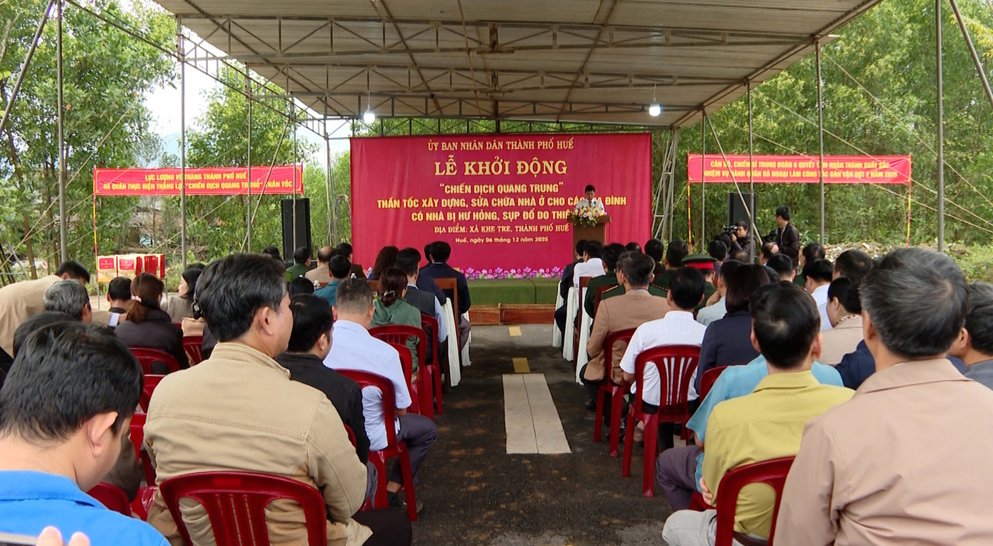 Ngày 6/12, UBND TP. Huế tổ chức lễ khởi động Chiến dịch Quang Trung tại hai xã Khe Tre và Lộc An, nhằm hỗ trợ các gia đình có nhà bị hư hỏng, sập đổ sau các đợt thiên tai vừa qua.