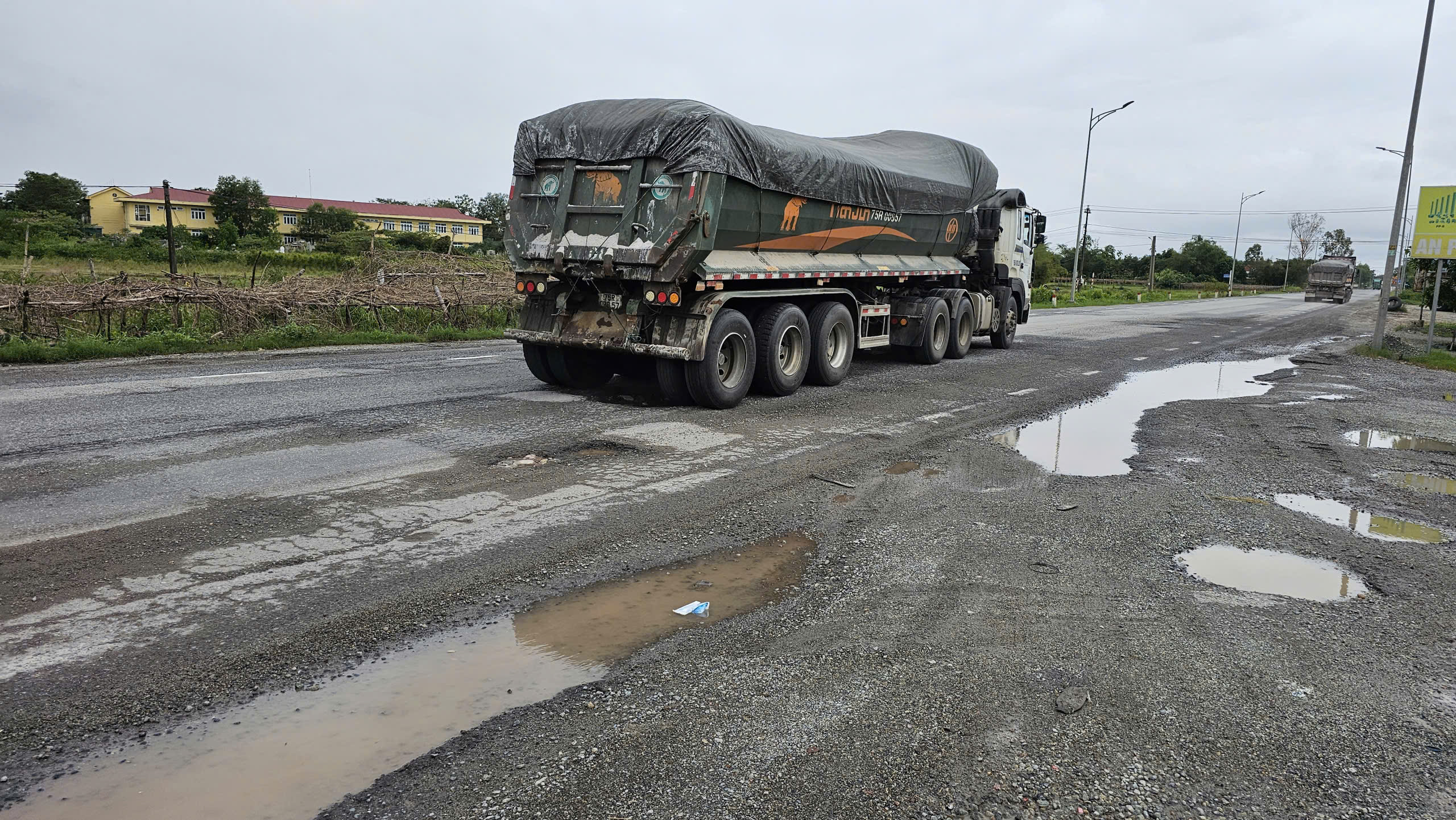 Nhiều xe tải phải né ổ voi, ổ gà xuất hiện trên quốc lộ 1.
