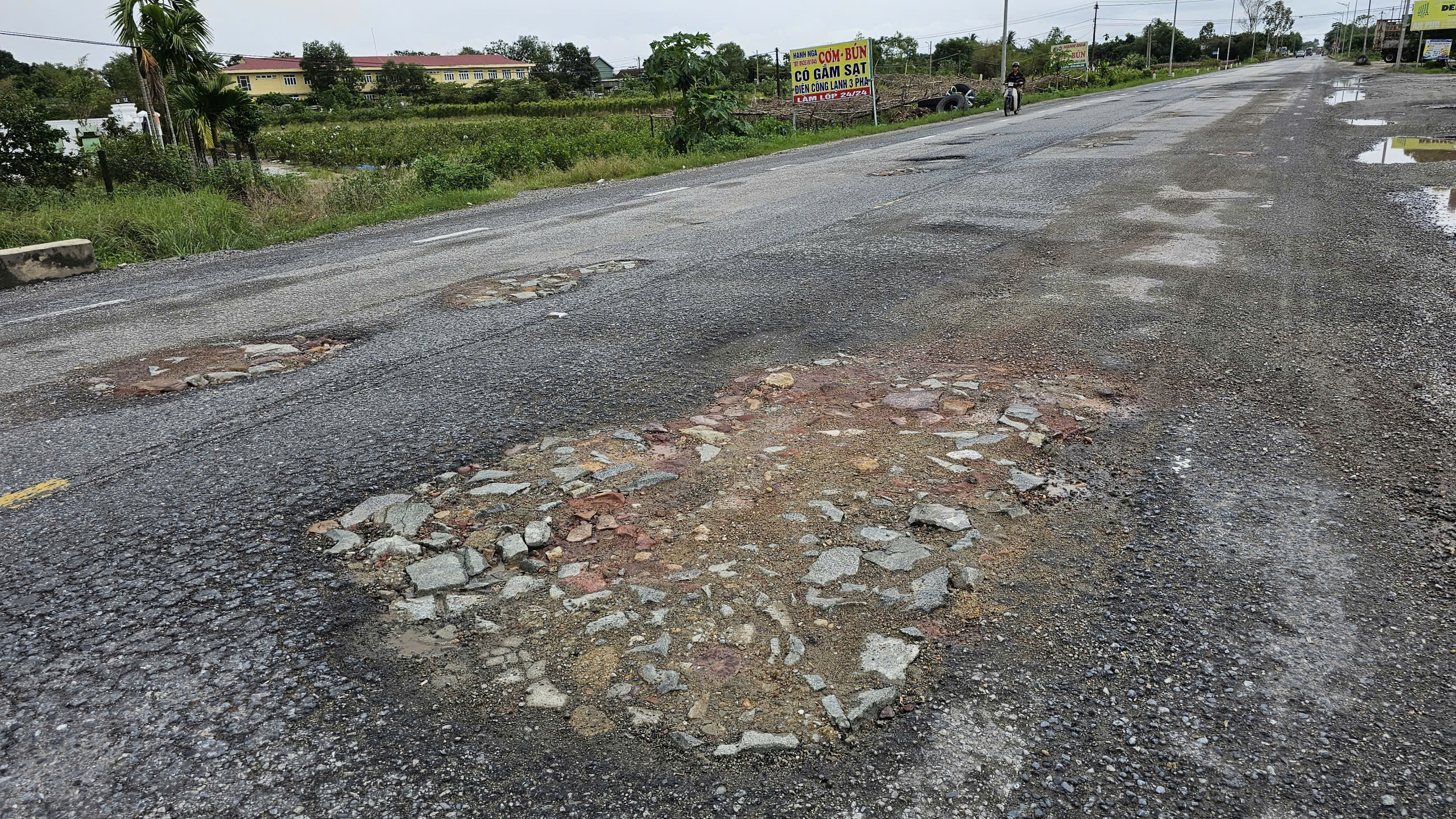 Đặc biệt, từ Trạm thu phí Phú Bài (phường Phú Bài) đến cầu vượt đường sắt đèo Phước Tượng, xã Phú Lộc xuất hiện rất nhiều ổ gà chằng chịt.