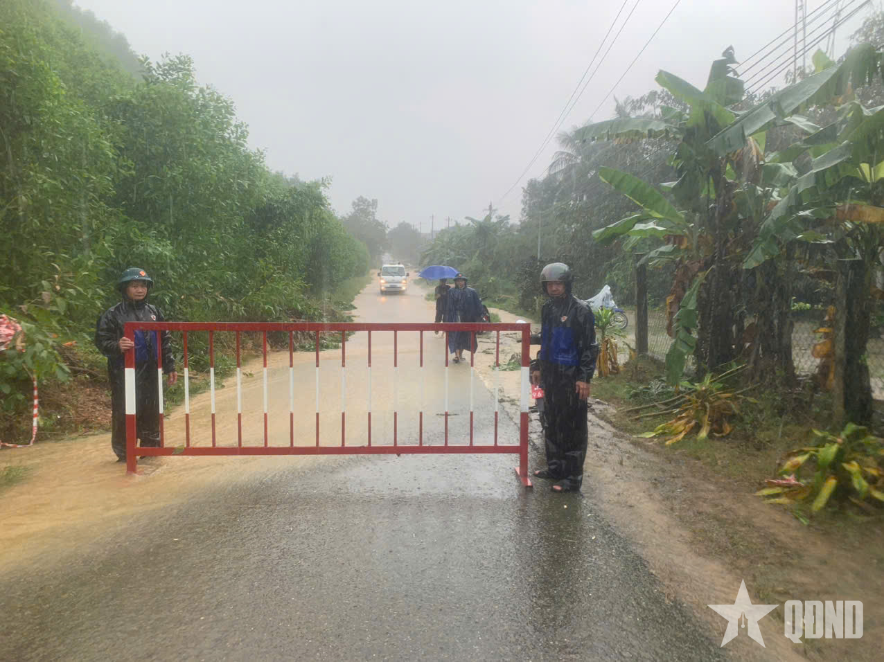Cán bộ, nhân viên Ban Chỉ huy Phòng thủ khu vực 3 - Phú Lộc ứng trực tại các điểm ngập lụt, bảo đảm an toàn cho người, phương tiện tham gia giao thông.