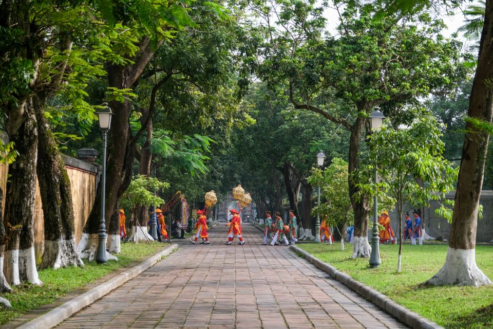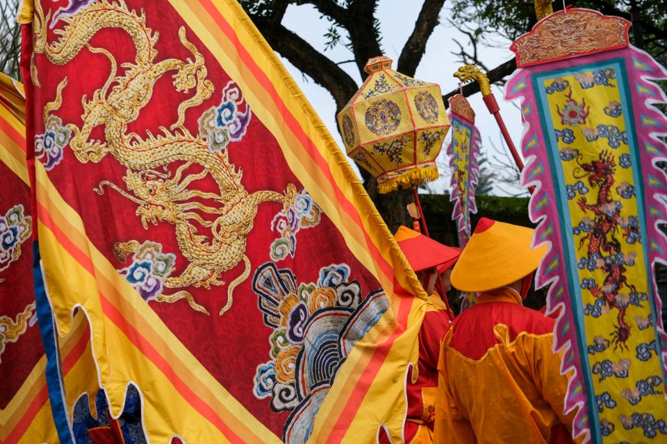 Đoàn rước nêu hướng đến Hiển Lâm Các.
