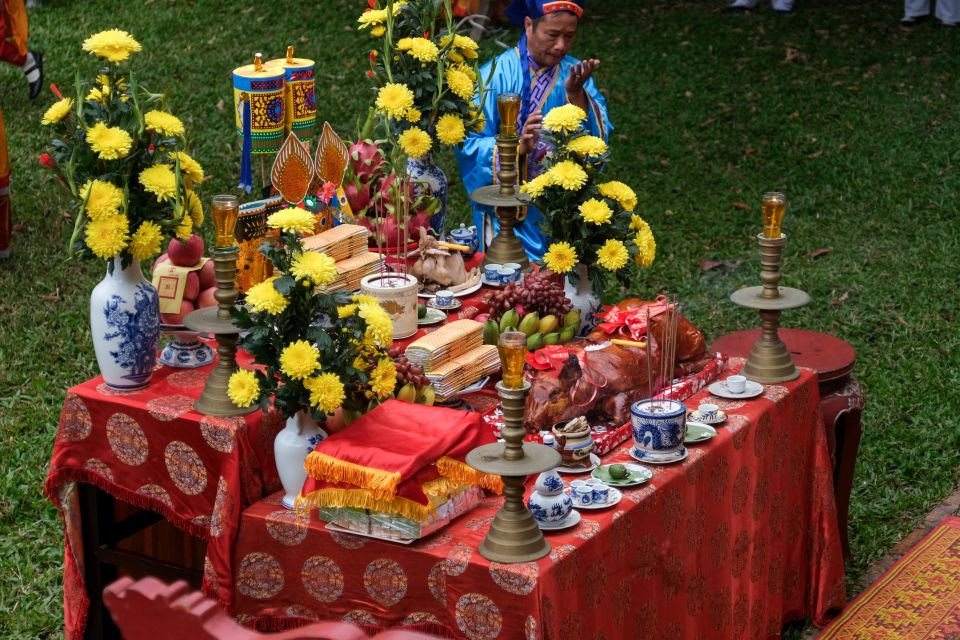 Buổi lễ diễn ra trong tiết trời Xuân tại Triệu Tổ Miếu.