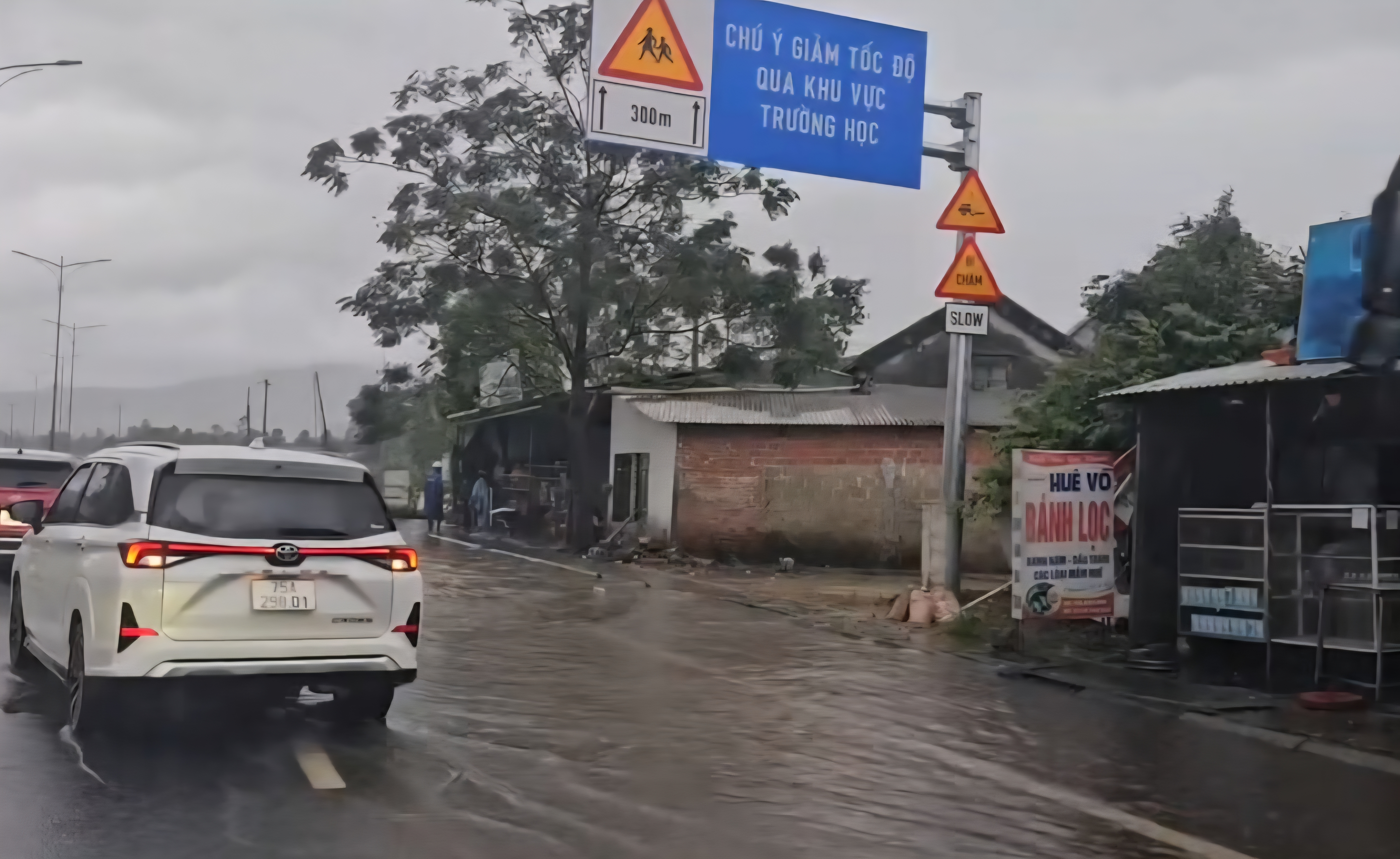 Quốc lộ 1A qua địa bàn xã Phú Lộc và nhiều khu dân cư ở địa phương này bị ngập cục bộ