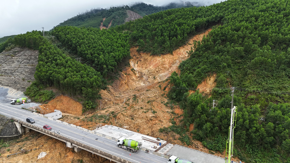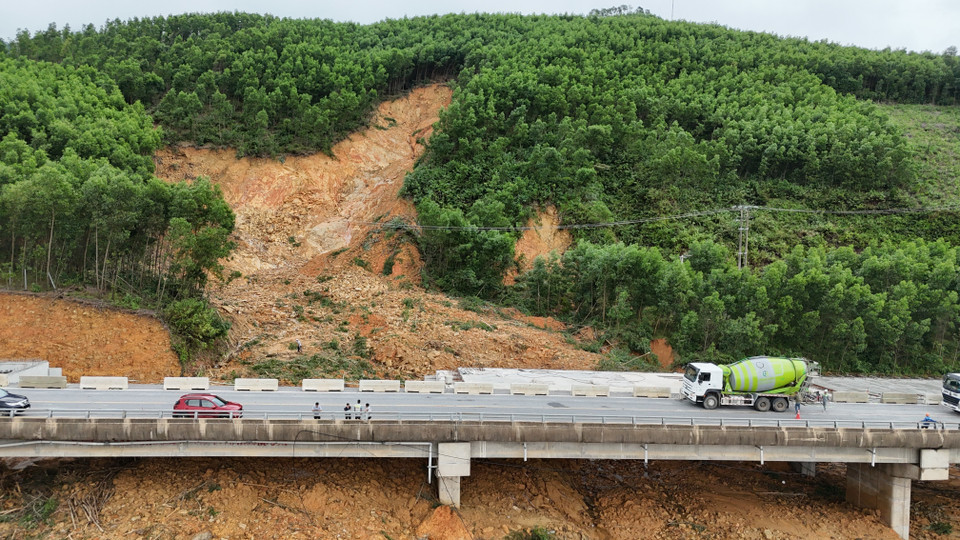 Mặt bằng Cao tốc La Sơn-Túy Loan được trả lại thông thoáng sau ảnh hưởng sạt lở. (Ảnh: Mai Trang/TTXVN)