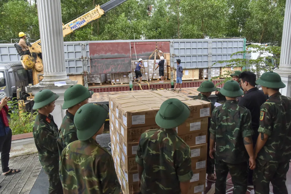 Ông Dương Đình Luân, Phó Chủ tịch Ủy ban MTTQ Việt Nam TP Huế, cho biết việc tiếp nhận số hàng hóa trên có sự hỗ trợ của Bộ Chỉ huy Quân sự TP Huế.