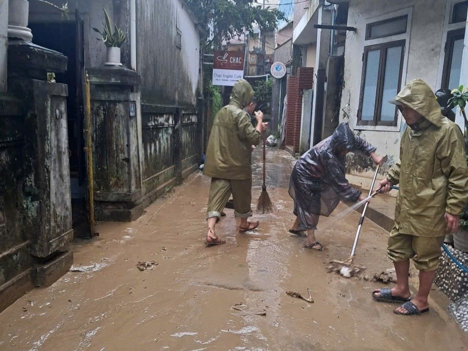 Hỗ trợ người dân dọn bùn khi nước rút, phương châm "nước rút đến đâu dọn sạch sẽ đến đó"