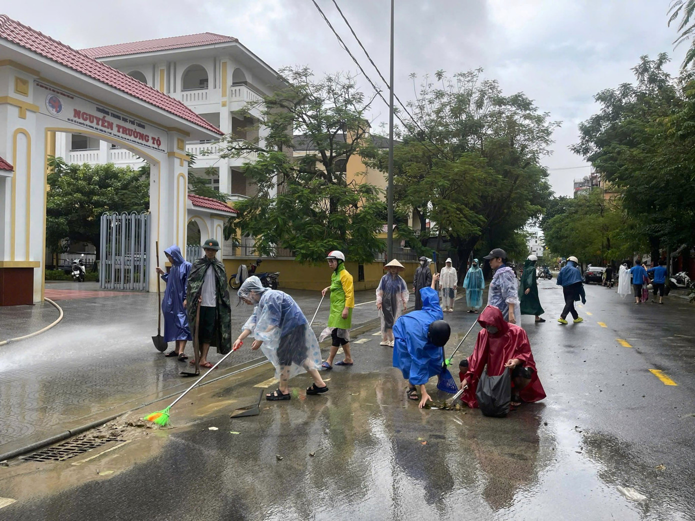 Ngay khi nước lũ vừa rút dần, hàng nghìn người gồm công nhân môi trường, bộ đội, công an, đoàn viên, thanh niên, giáo viên và người dân đã đồng loạt ra quân tổng vệ sinh trên toàn địa bàn TP Huế. Từ khu vực trung tâm thành phố đến các phường, xã vùng ven, hoạt động dọn dẹp vệ sinh được triển khai theo hình thức cuốn chiếu “nước rút đến đâu, làm sạch đến đó”.