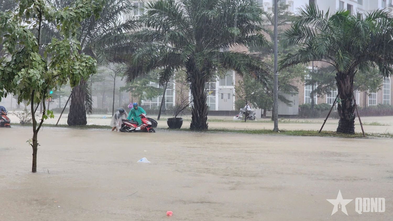 Đường Huỳnh Thúc Kháng trước đó đã được cán bộ, chiến sĩ Trung đoàn bộ binh 6 dọn sạch bùn đất, rác thải, nay lại chìm trong biển nước.