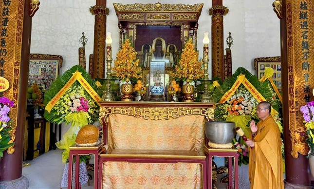 Sau thời cúng ngọ được cử hành tại chánh điện tổ đình Từ Đàm, chư tôn đức Tăng Ni, Phật tử đã đảnh lễ Giác linh Trưởng lão Hòa thượng tại tổ đường.