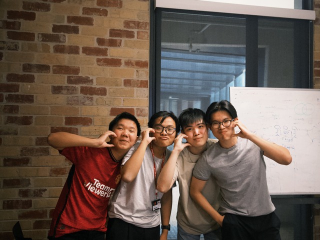 Võ Quang Phú Đức (thứ 2 từ trái sang phải) cùng các quán quân Olypia mùa trước tại Úc.