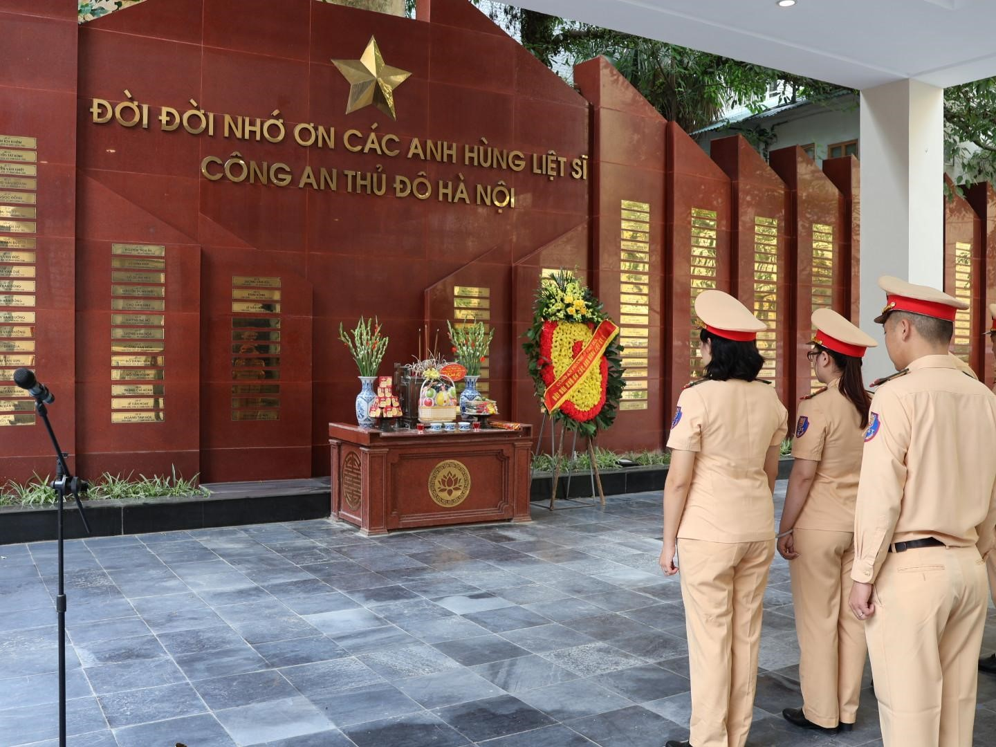 Đoàn Thanh niên Phòng CSGT thành kính dâng hương tại Đài tưởng niệm các anh hùng liệt sĩ Công an TP Hà Nội.