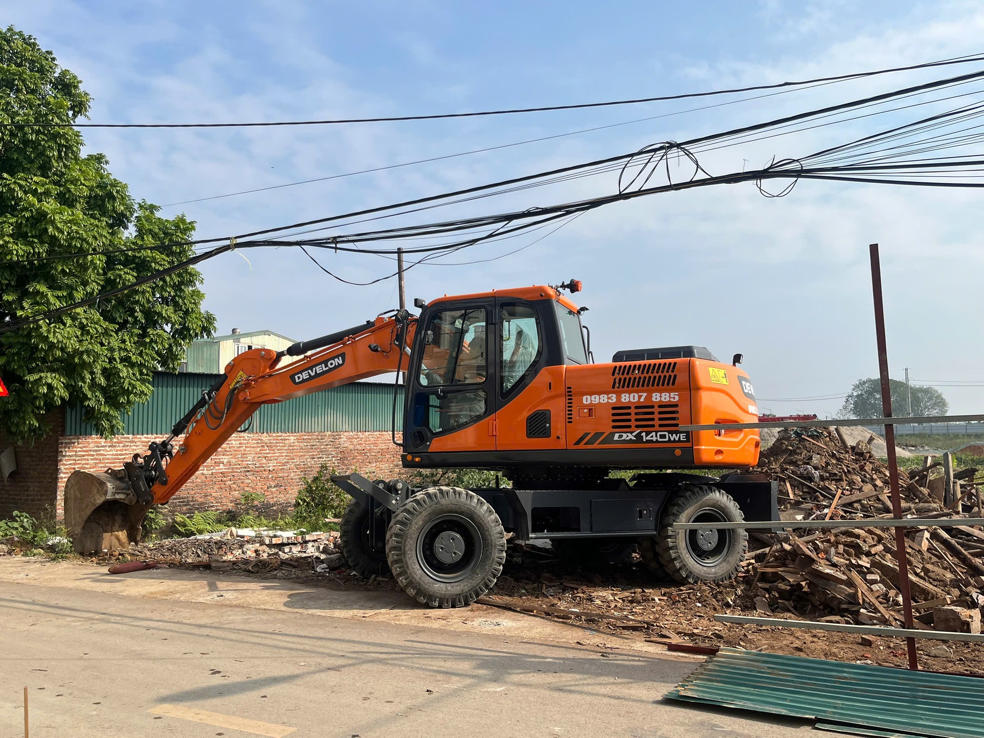 Máy móc được huy động để thu dọn vật kiến trúc trong khu đất. Ảnh: Văn Phong
