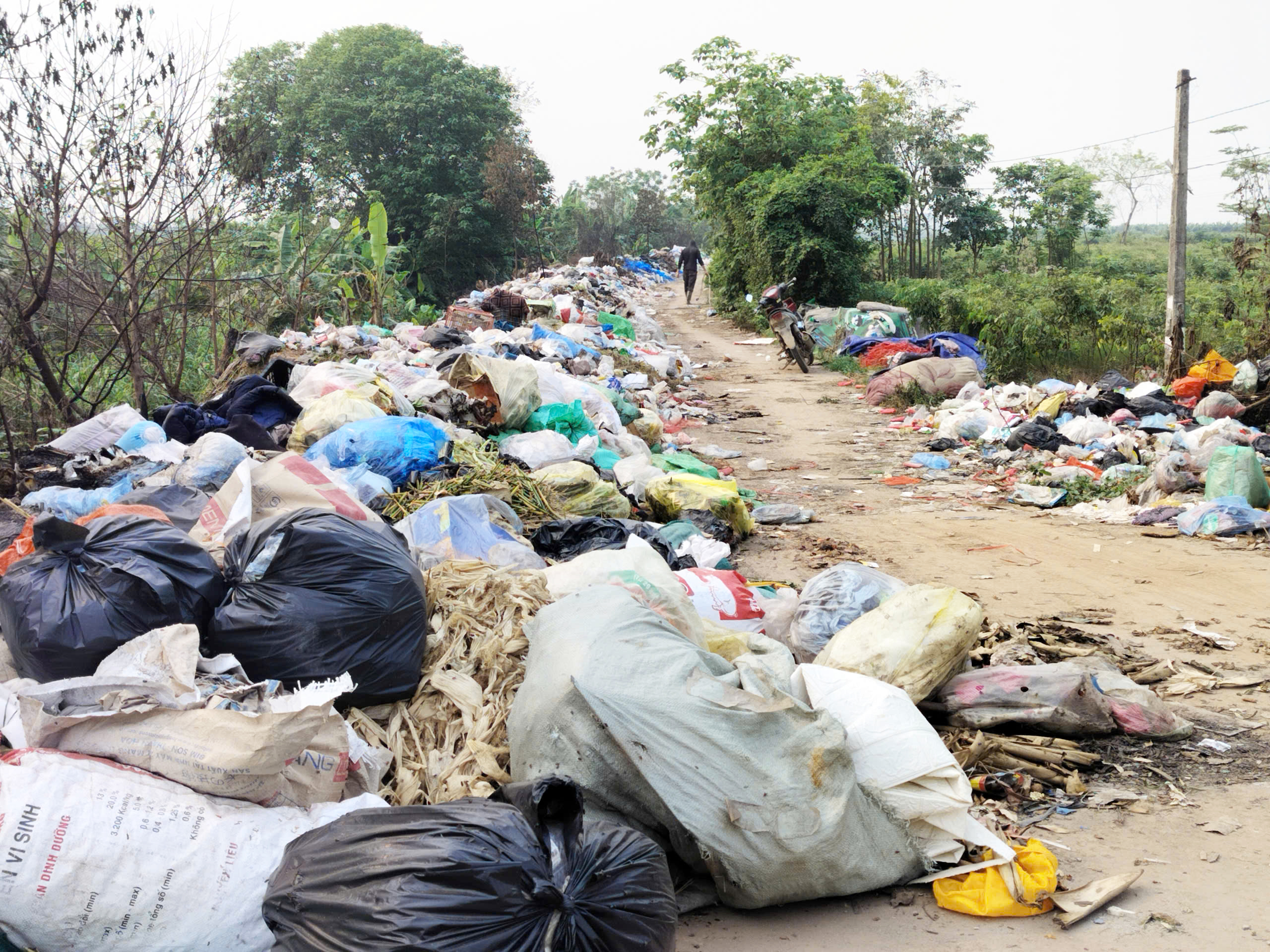 Tuyến đường dẫn vào bãi rác thôn Mãn Hòa (xã Châu Ninh) bị rác thải sinh hoạt bủa vây, kéo dài gần 1km, gây ô nhiễm nghiêm trọng môi trường và đời sống người dân.
