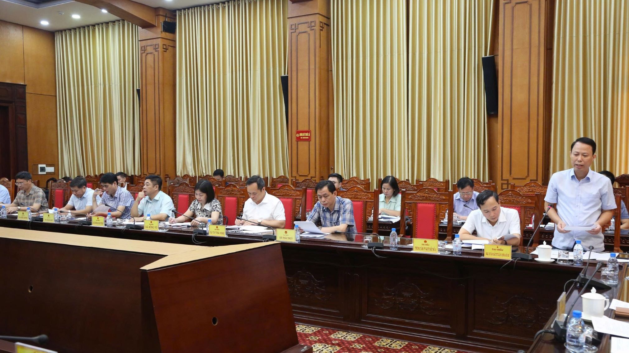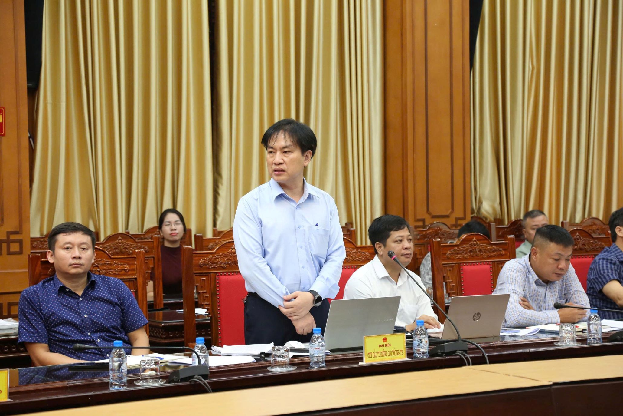 Ông Nguyễn Xuân Khánh, Giám đốc Ban Quản lý dự án đầu tư xây dựng số 02 tỉnh Hưng Yên phát biểu tại cuộc họp. Ảnh Trịnh Cường