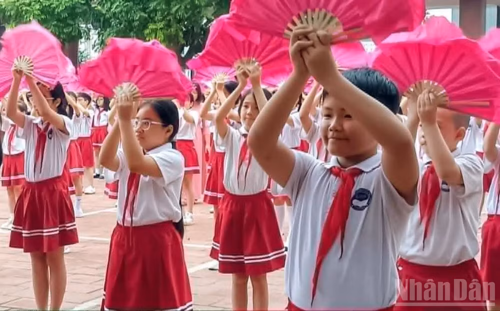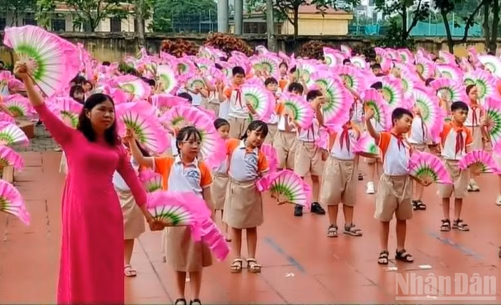 Tại trường Tiểu học Lê Hồng Phong (phường Thái Bình, tỉnh Hưng Yên), bắt đầu từ 7 giờ 30 phút sáng, hơn 1.500 học sinh đã tề tựu dưới sân trường trình diễn 2 tiết mục đồng diễn gồm: Múa chèo “Trường học hạnh phúc” theo điệu năm cung và “Hát vang trong kỷ nguyên mới”, một sáng tác của nhạc sĩ Xuân Trí.