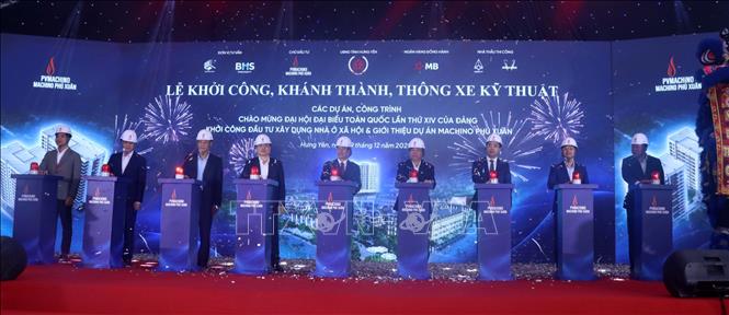 Các đại biểu thực hiện nghi thức khởi công. Ảnh: Thế Duyệt/TTXVN