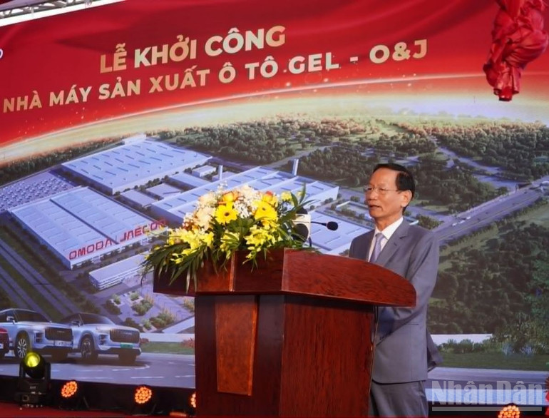 Ông Vũ Văn Tiền, Chủ tịch Hội đồng quản trị Tập đoàn Geleximco cam kết hoàn thành giai đoạn 1 nhà máy sản xuất ô-tô trong tháng 6/2026.
