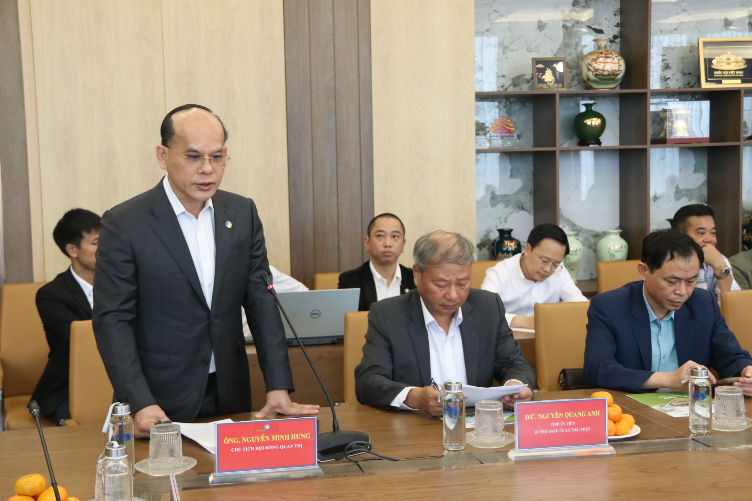 Ông Nguyễn Minh Hưng, Chủ tịch HĐQT Công ty cổ phần Green i - Park, chủ đầu tư hạ tầng KCN Liên Hà Thái phát biểu tại buổi làm việc