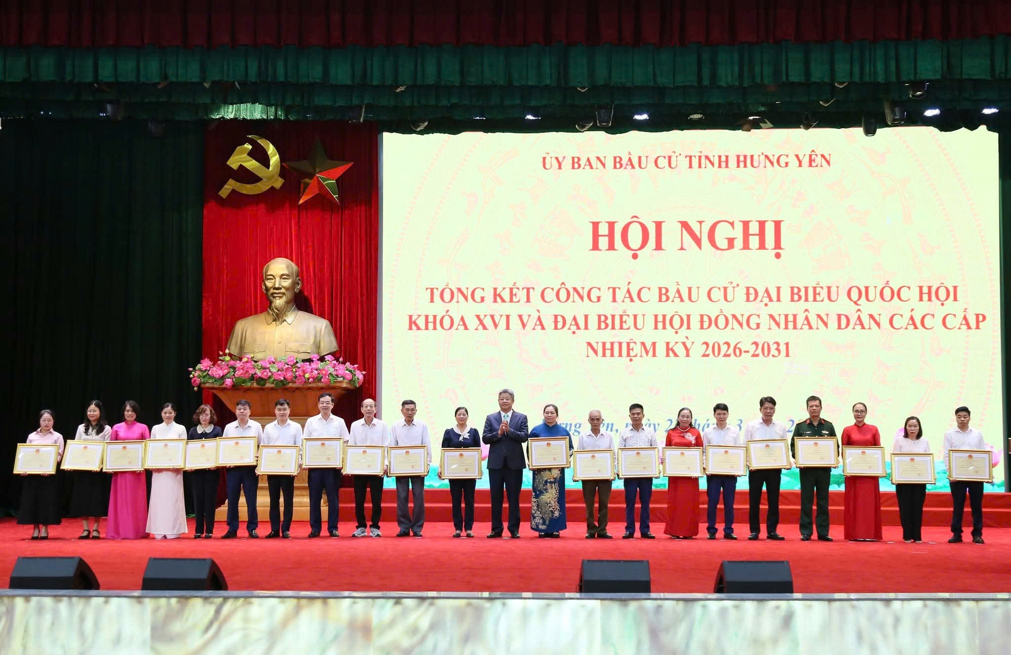 Cũng tại hội nghị, 475 tập thể, cá nhân có thành tích xuất sắc trong công tác bầu cử ĐBQH khóa XVI và đại biểu HĐND các cấp nhiệm kỳ 2026 - 2031 đã được Chủ tịch UBND tỉnh tặng Bằng khen.