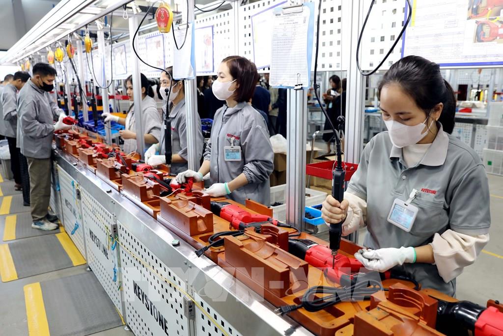 Công nhân sản xuất các sản phẩm dụng cụ điện cầm tay tại dự án Nhà máy Keystone Electrical Việt Nam (Khu Công nghiệp Liên Hà Thái), xã Thái Thụy, tỉnh Hưng Yên. Ảnh: Thế Duyệt – TTXVN